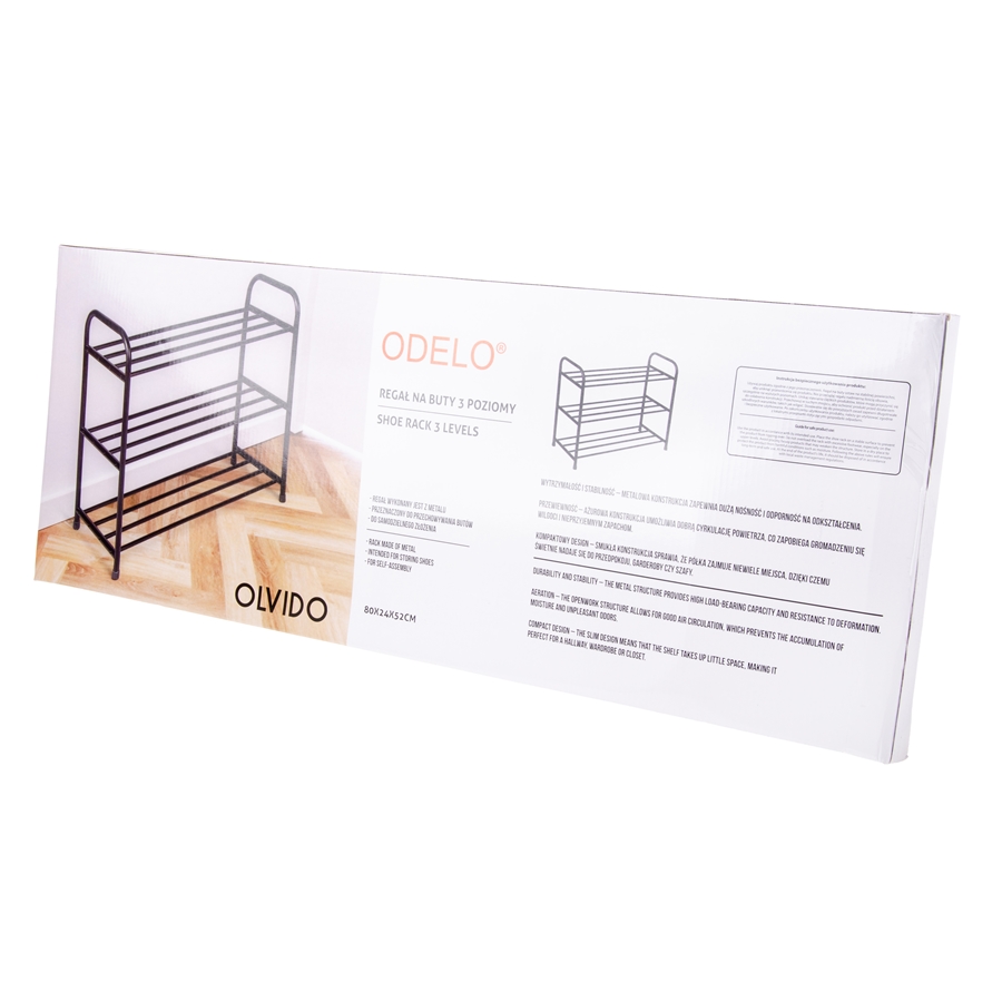 Trzy poziomy zapewniają praktyczne miejsce do przechowywania obuwia, a otwarta,