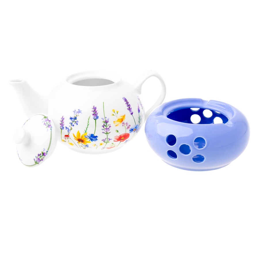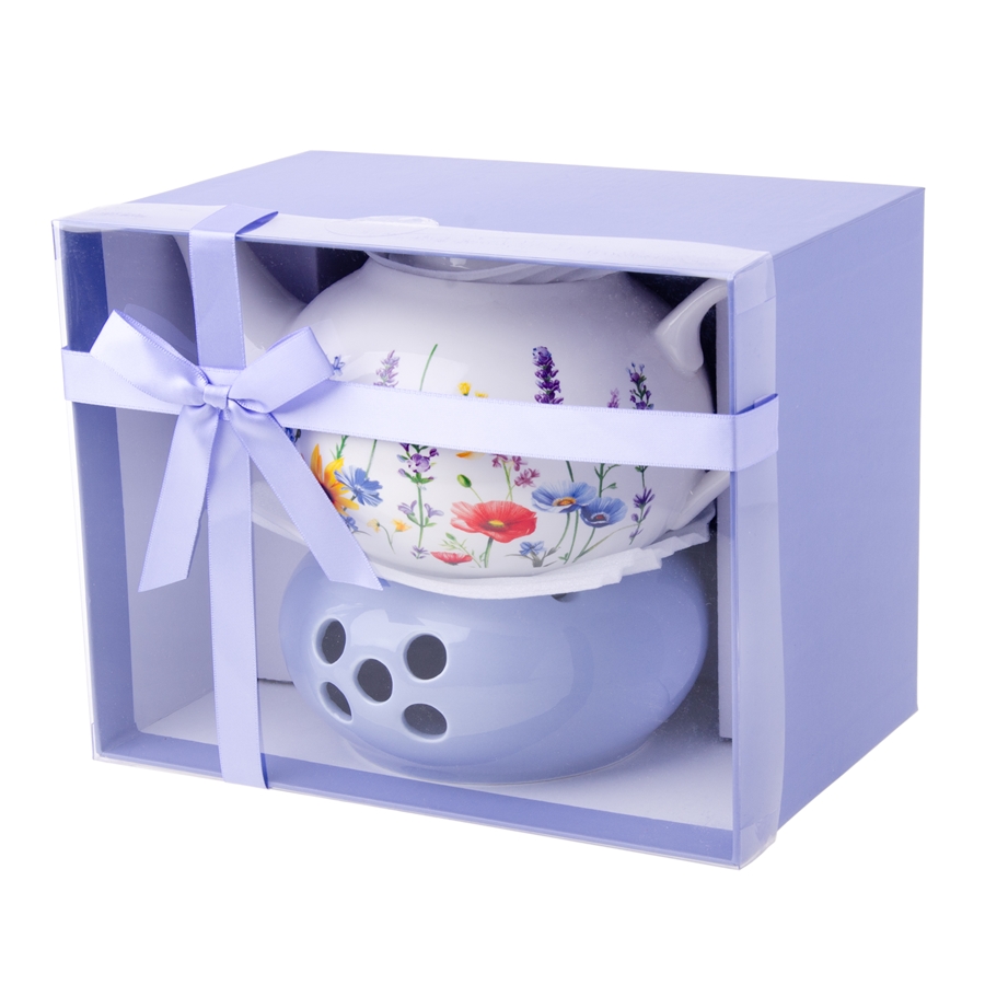 kwiatowym pięknie prezentuje się na stole, a podgrzewacz pozwala dłużej cieszyć
