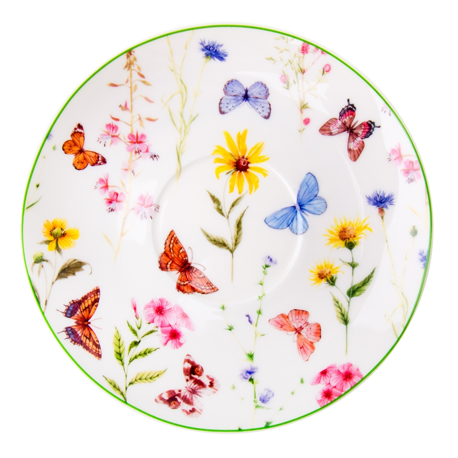 połączona z delikatnym motywem kwiatów i motyli nadaje całości wyjątkowej