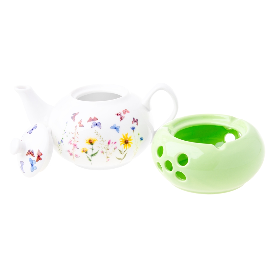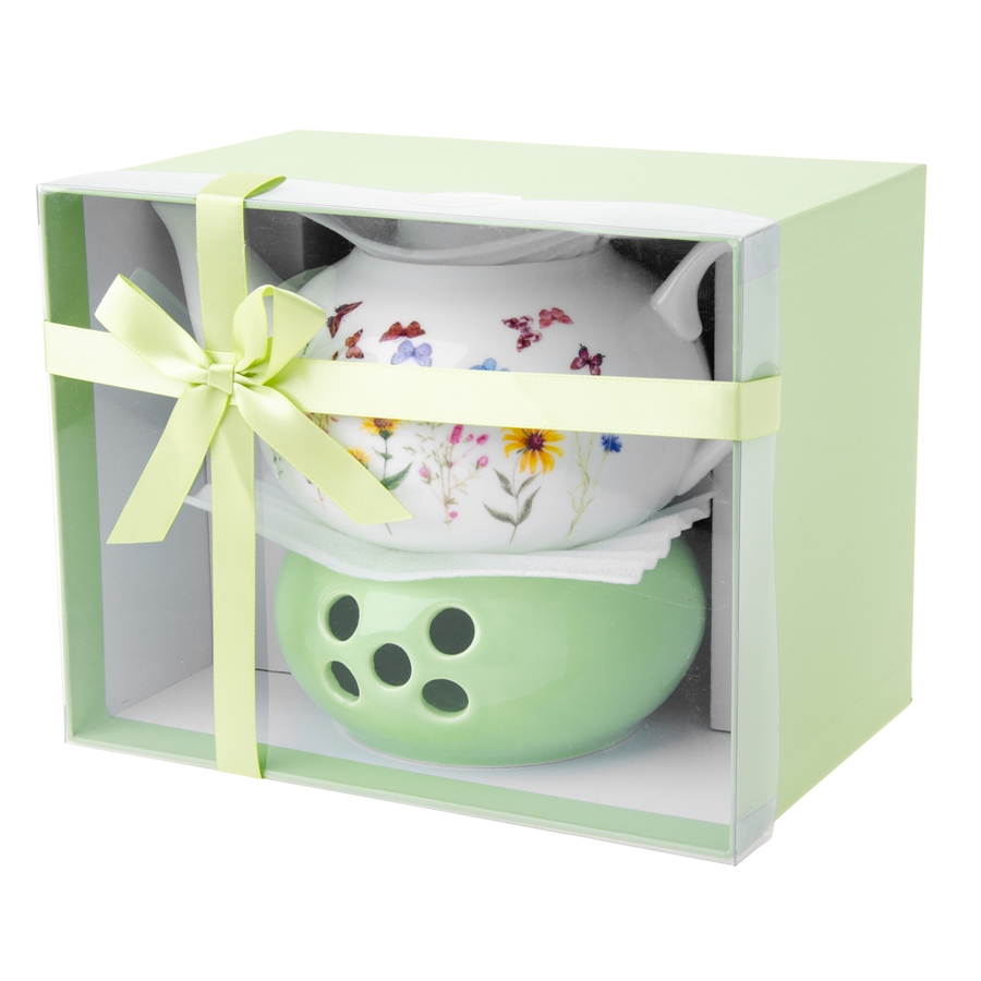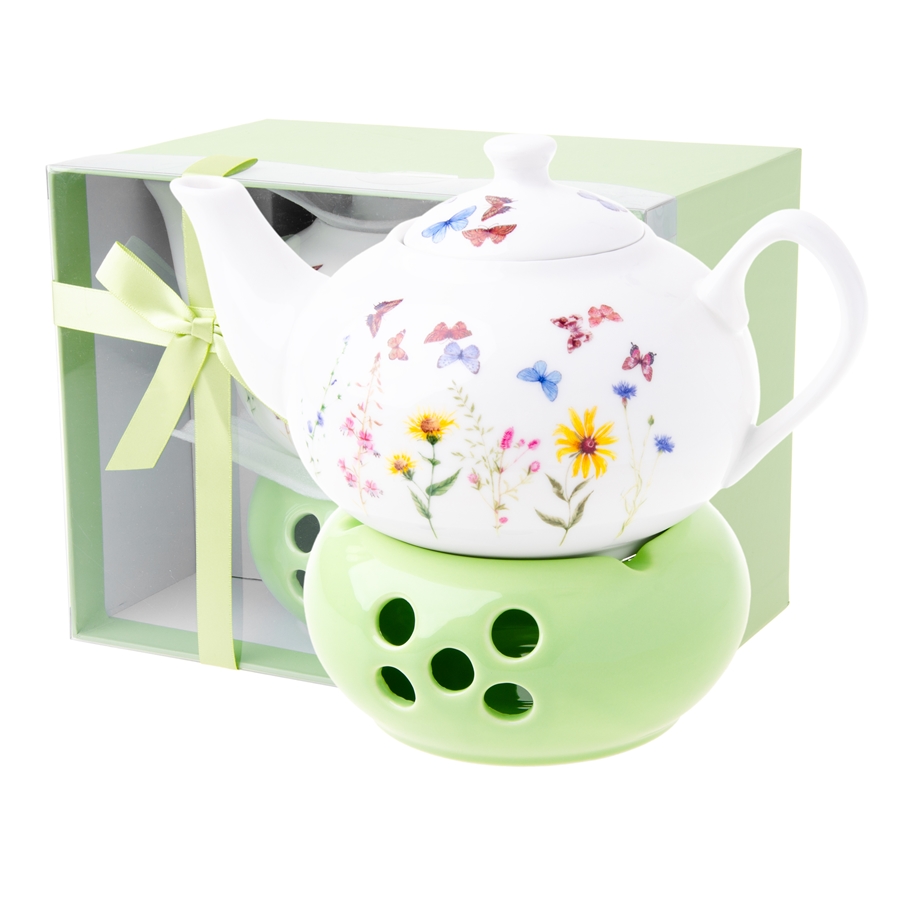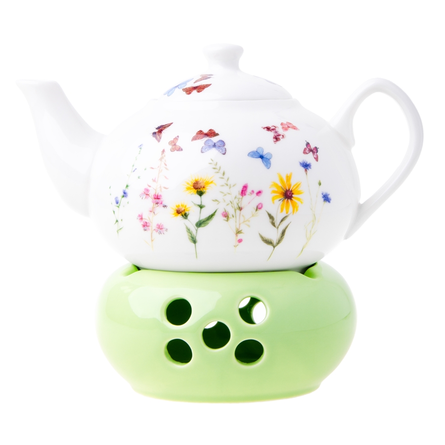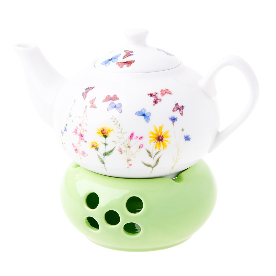 motyli i kwiatów pięknie prezentuje się na stole, a podgrzewacz pozwala dłużej