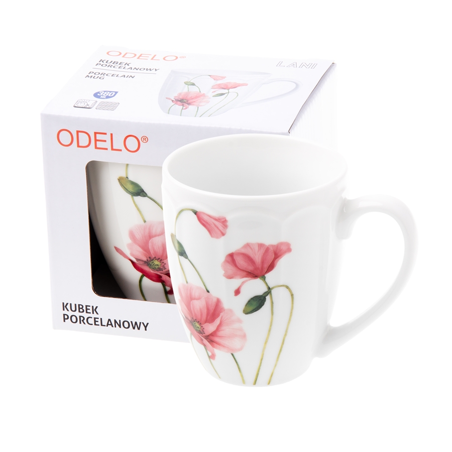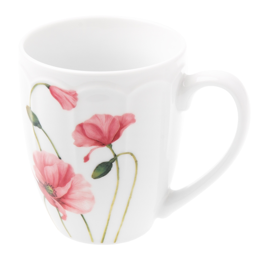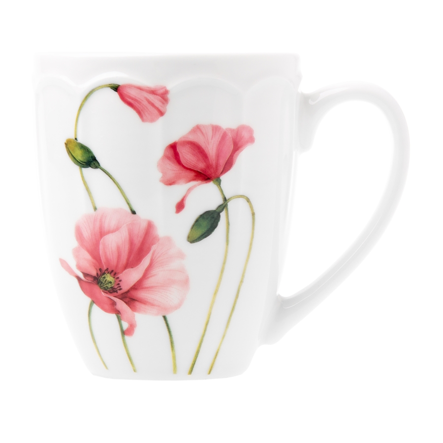 Elegancki kubek z delikatnym motywem maków, zapakowany w