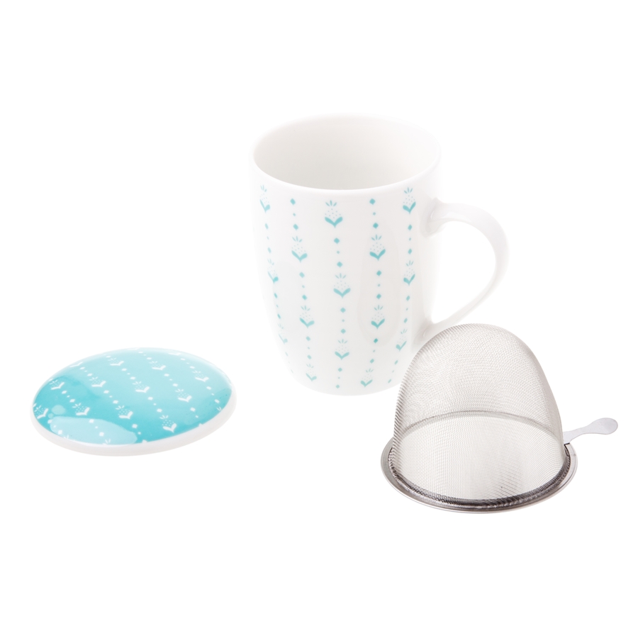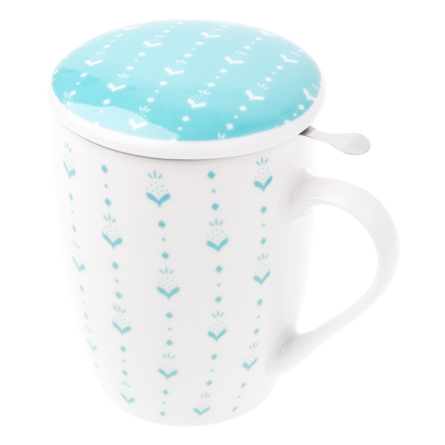 Stylowy zestaw do herbaty: porcelanowy kubek z pokrywką i