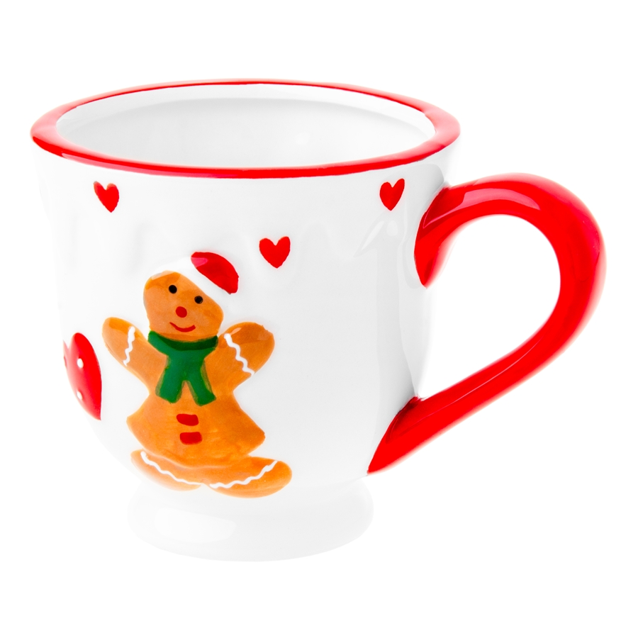 Kubek z świątecznym motywem pierniczka. Wykonany z