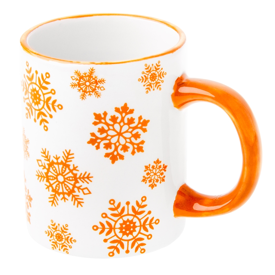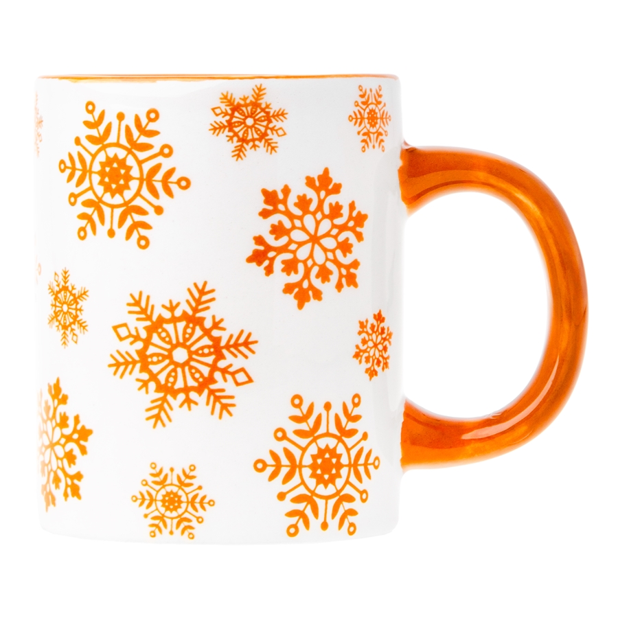 Kubek z zimowym motywem śnieżynek. Wykonany z solidnej