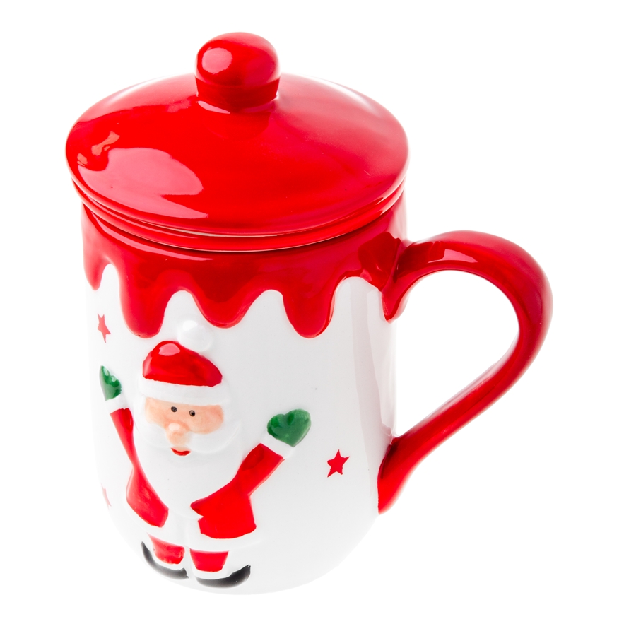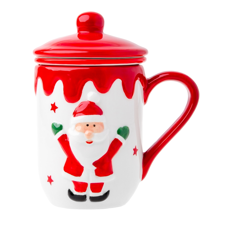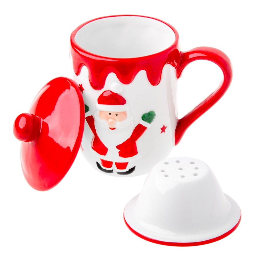 Kubek z zaparzaczem oraz pokrywką, w świątecznym