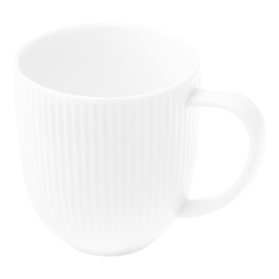 porcelany w śnieżnobiałym kolorze. Elegancka, żłobiona faktura i wygodna rączka