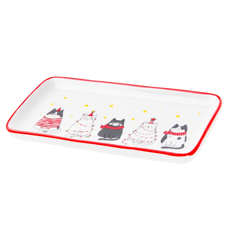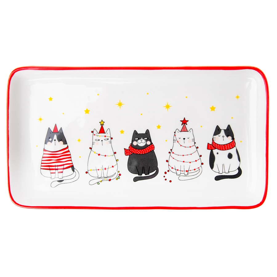 Ceramiczny talerz na ciasto z motywem uroczych świątecznych kotów to solidnie