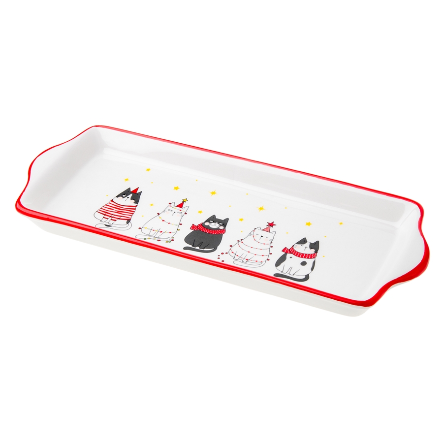 Ceramiczny talerz na ciasto z motywem uroczych świątecznych kotów to solidnie