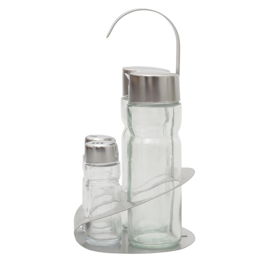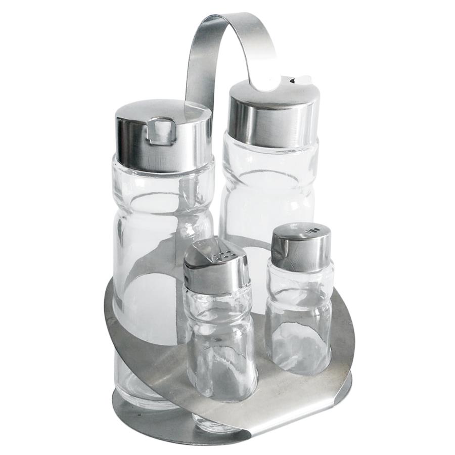 komplet przyprawników do soli, pieprzu, oliwy i octu na stojaku to niezbędnik w