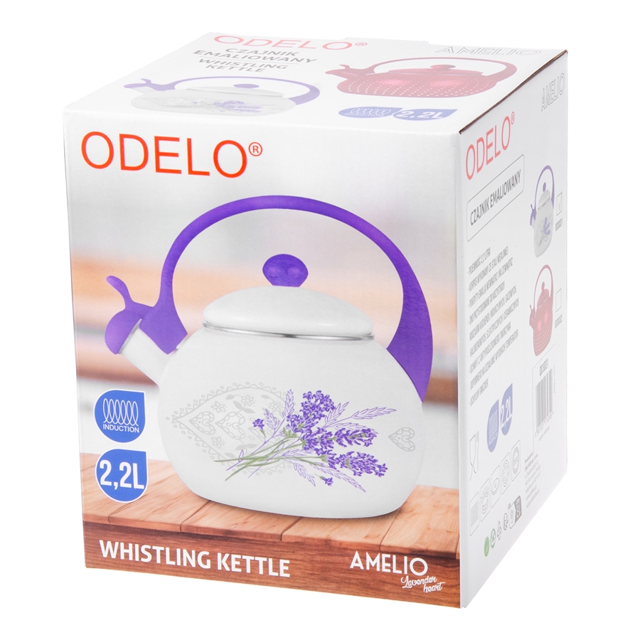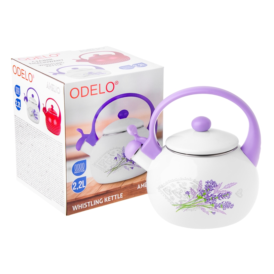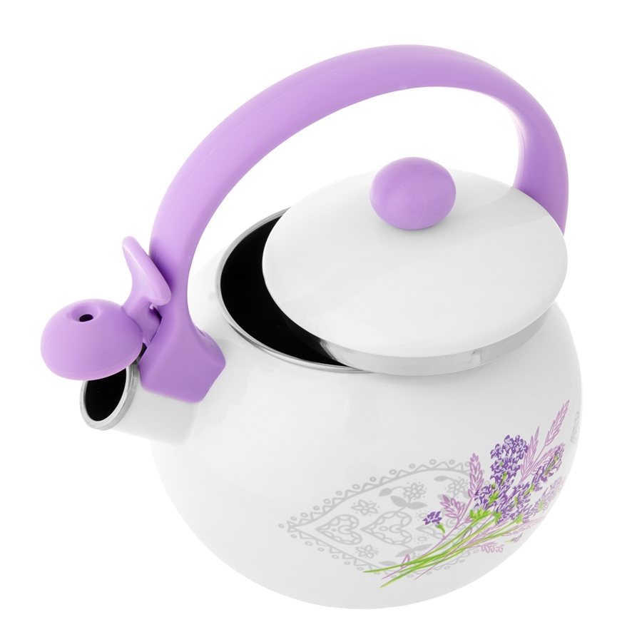 dekoracyjnym wzorem w lawendę. Korpus ze stali węglowej został pokryty emalią