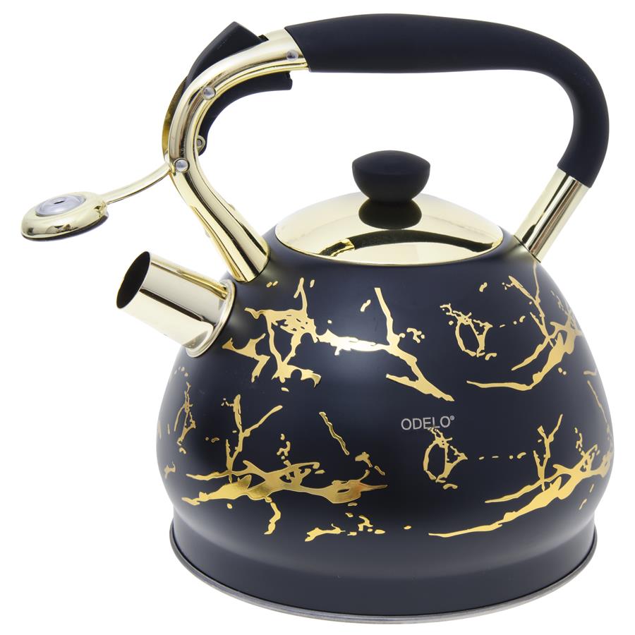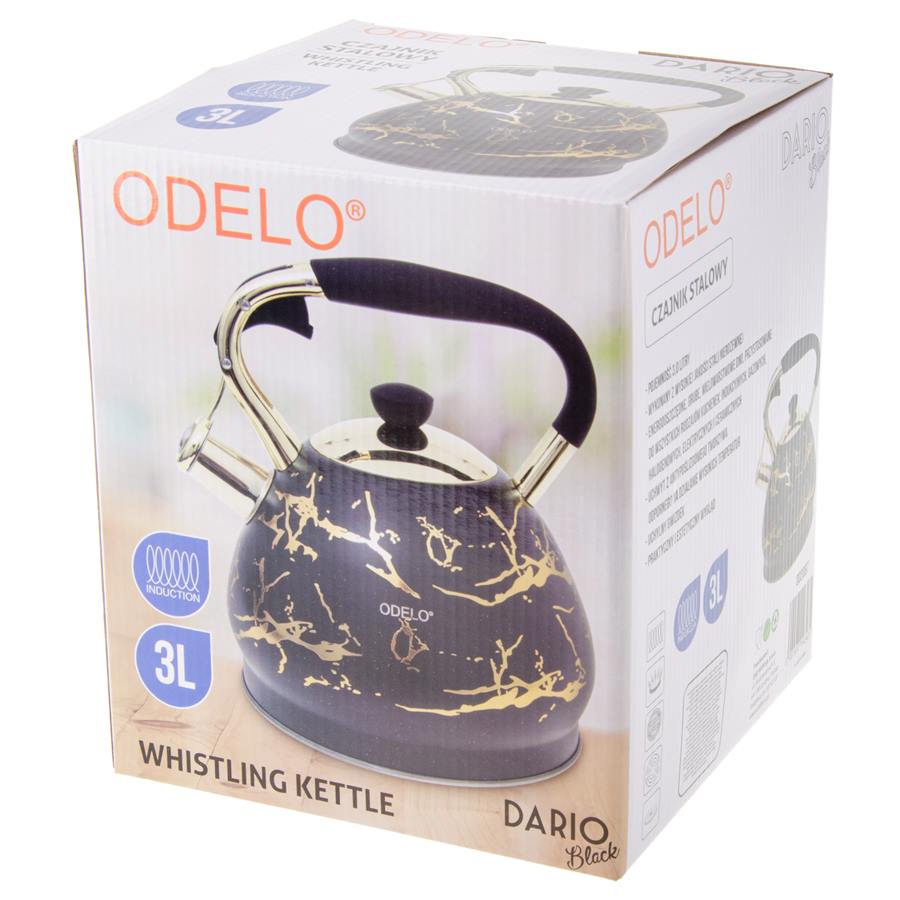 Czajnik stalowy DARIO ze zdobieniami w kolorze złota, o pojemności 3,0L marki ODELO.