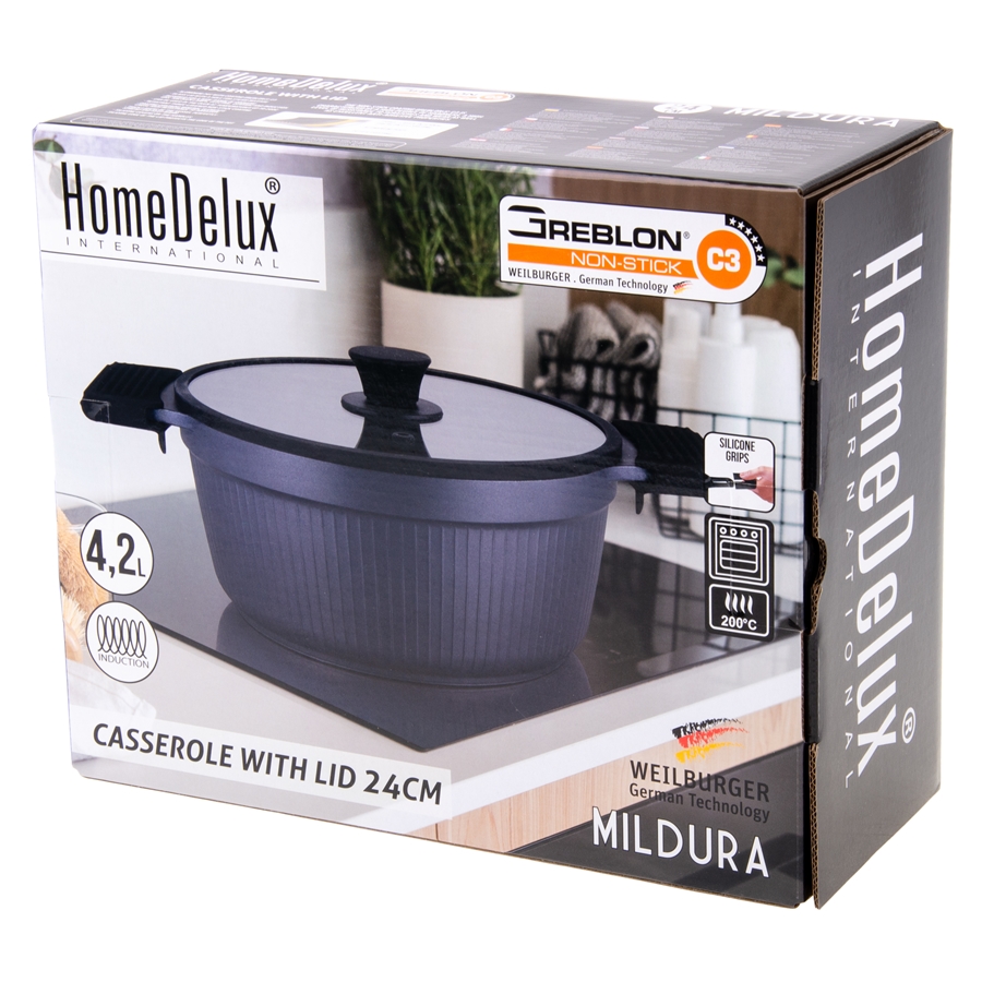 GAREK MILDURA HOMEDULUX 24CM GREBLON C3 4,2L Z POKRYWĄ SZKLANĄ 1szt.