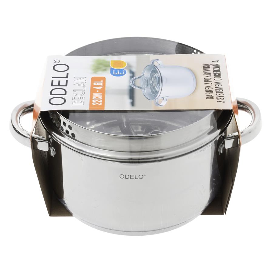 Garnek stalowy marki ODELO z systemem odcedzania to praktyczne i