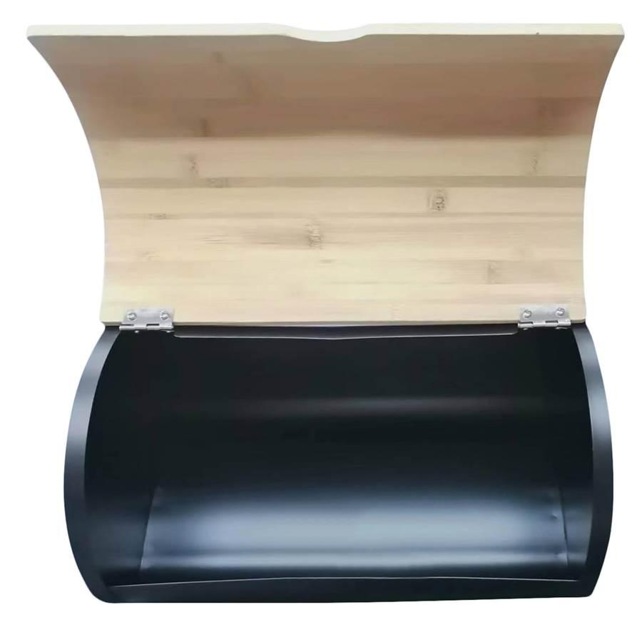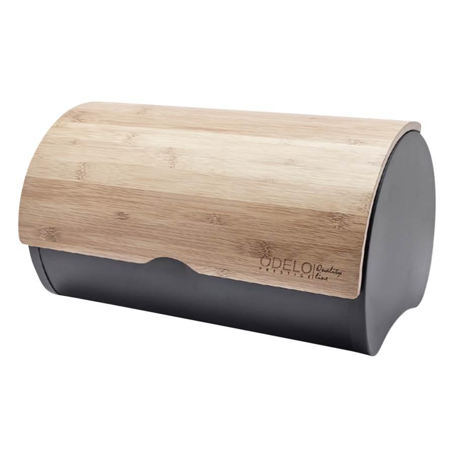 Stalowy chlebak serii UBALDO w kolorze czarnym z drewnianą pokrywą marki ODELO.