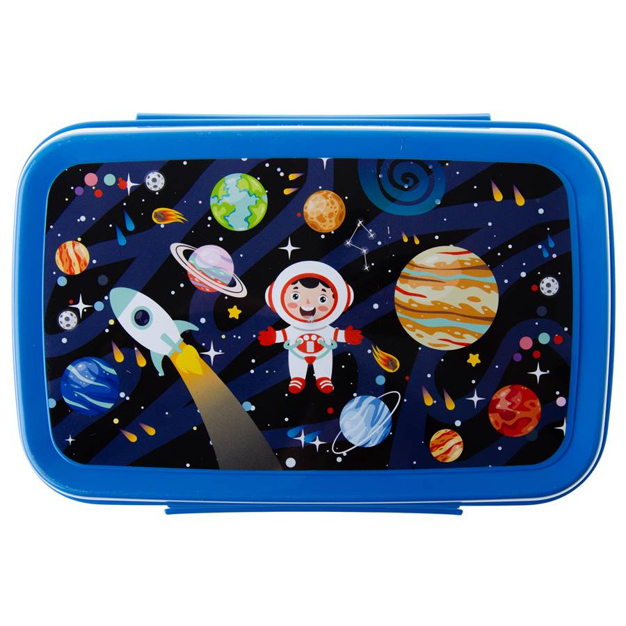 śniadaniówka z kolorowym obrazkiem kosmosu zachwyca dziecięcym, uroczym