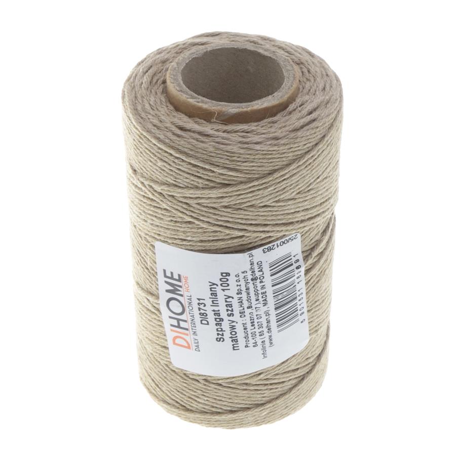Naturalny, szary szpagat lniany o matowym wykończeniu. Wytrzymały i